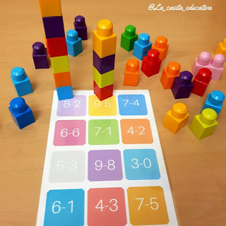 Material para practicar operaciones, en este caso, sumas y restas con piezas de colores. De esta manera los niños pueden aprender de manera más amena.