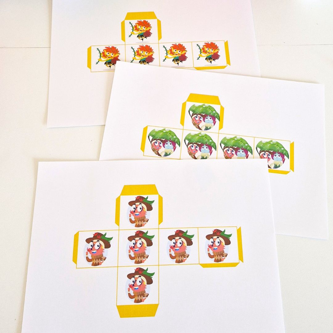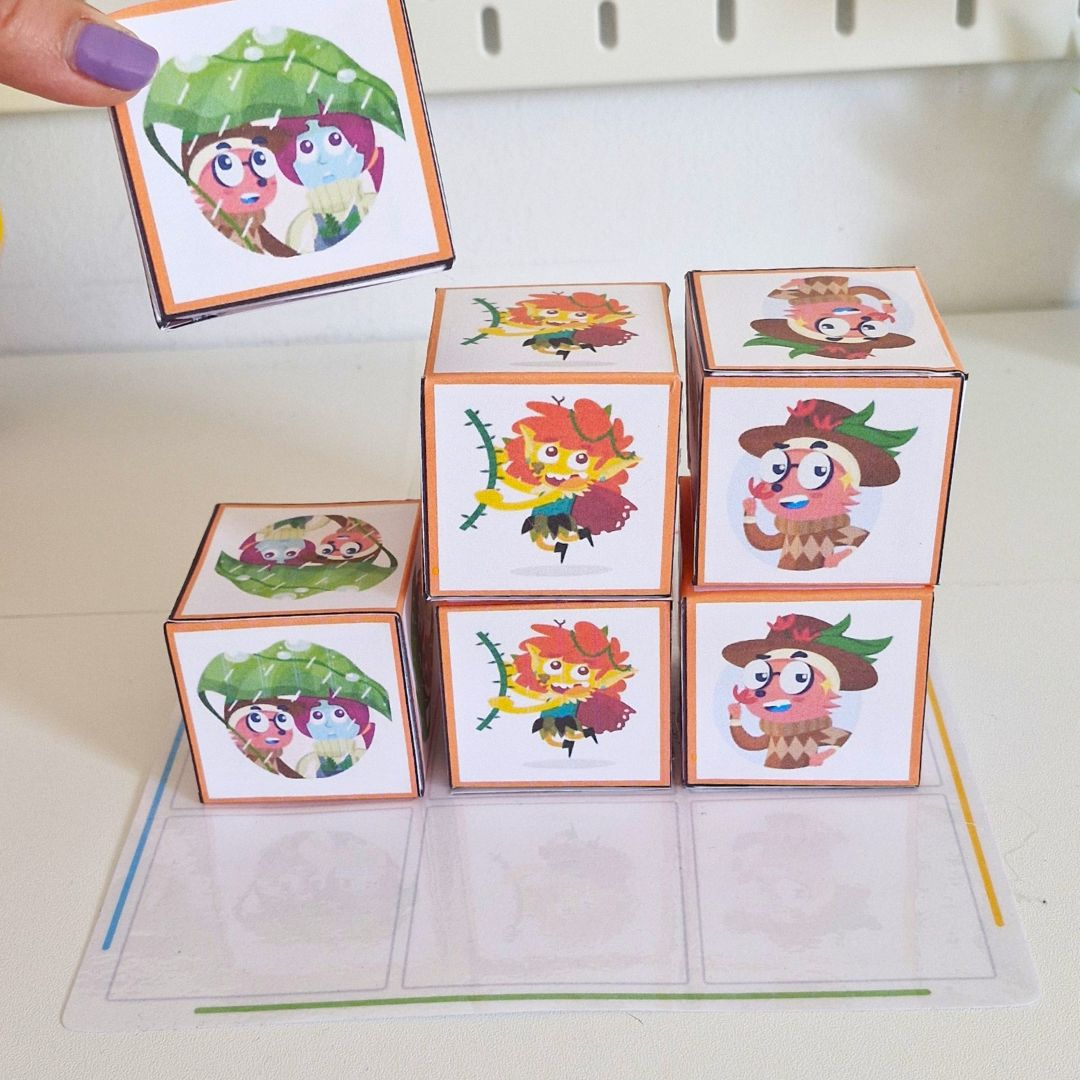 Plantillas de cubos recortables para montar y manipular con algunos personajes Bmath.