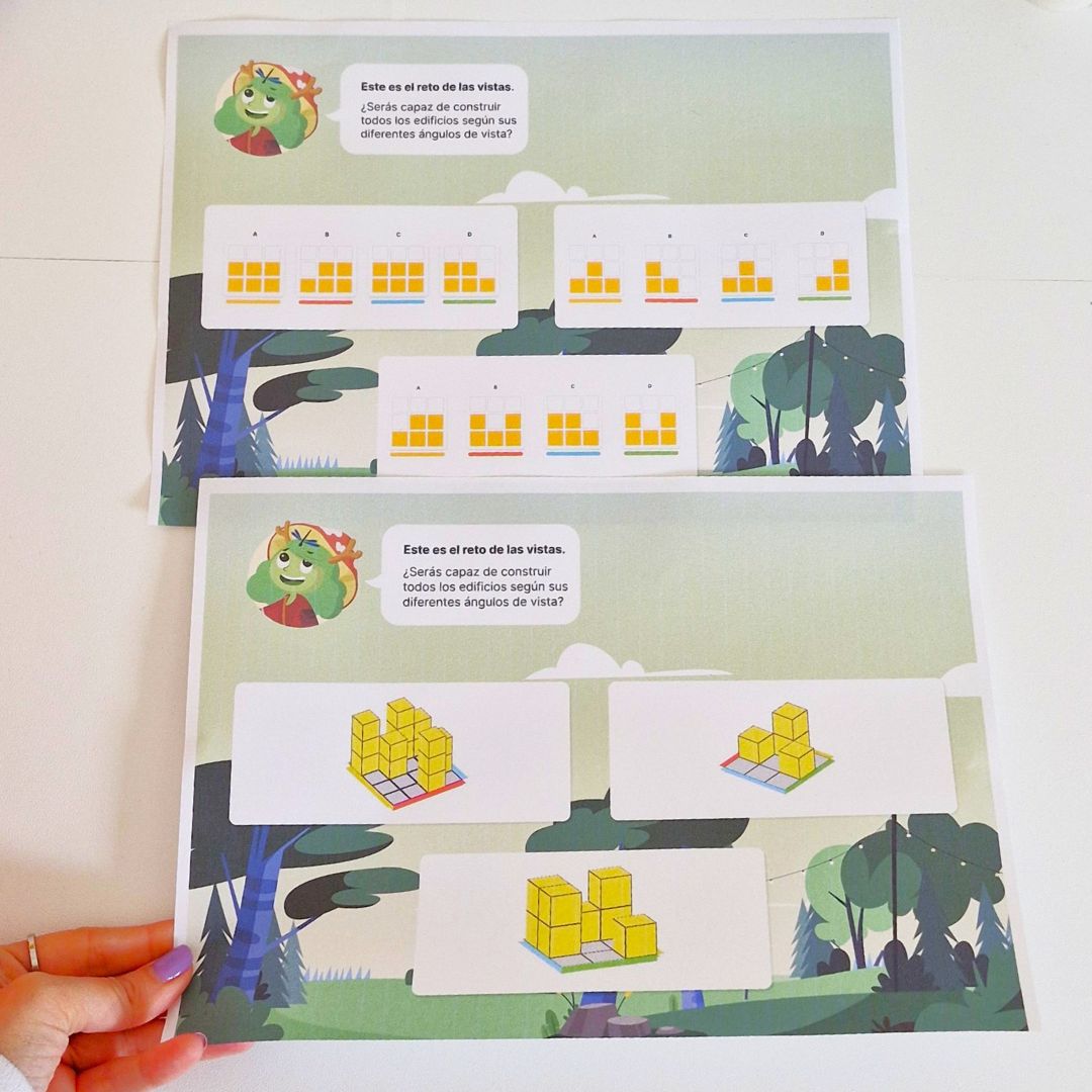 El reto de las vistas es un material de orientación espacial para educación primaria diseñado para que los niños observen, analicen y construyan modelos tridimensionales a partir de diferentes perspectivas.
