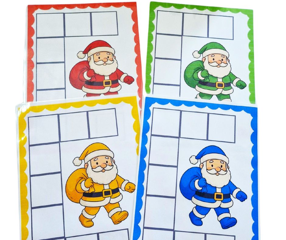 - 4 Plantillas DINA4 con ilustraciones de Papá Noel en 4 colores.