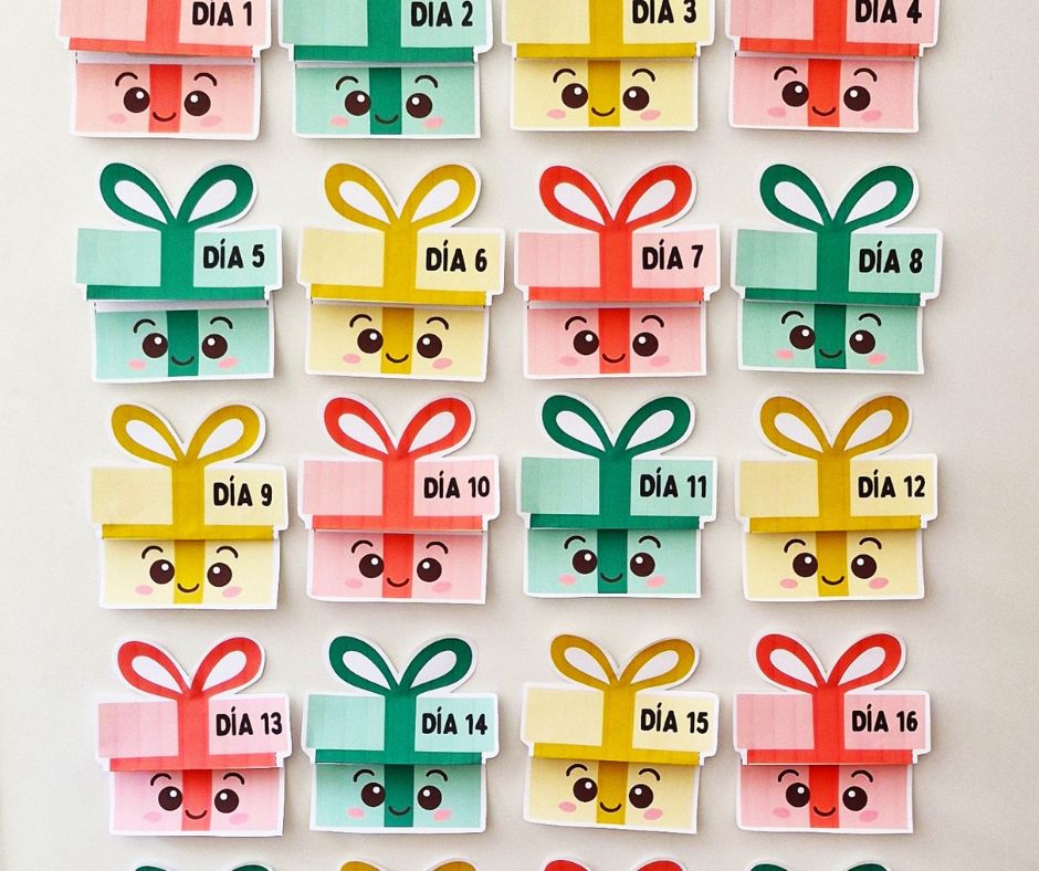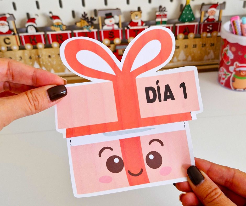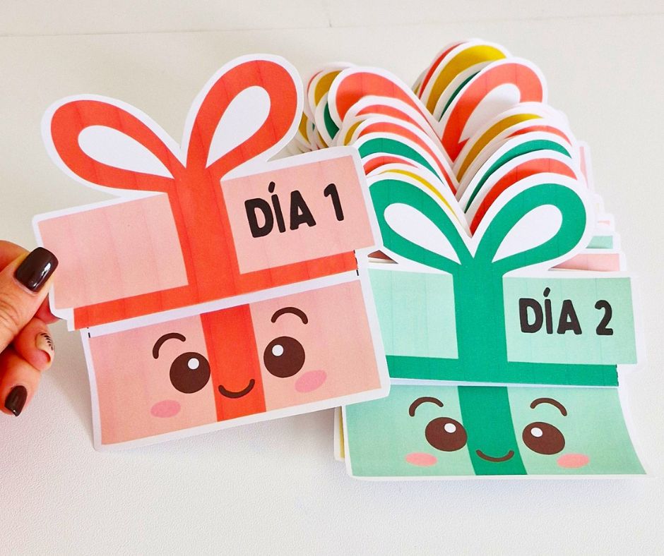 - 24 regalos recortables, cada uno de ellos con un mensaje diferente.